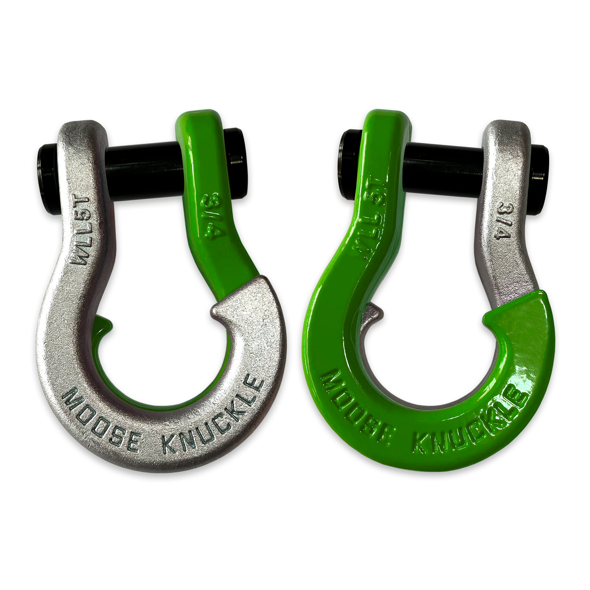 All color options are fully interchangeable. Buy two different color shackles and combine them to match the color scheme of your rig and give your build a more custom accented look. The hooked sides are fully covered with a durable powder coating pantone color matched to popular truck and Jeep colors. The shackle pin is Black Nickel plated and machined from High Strength Grade 8 Carbon Steel.
