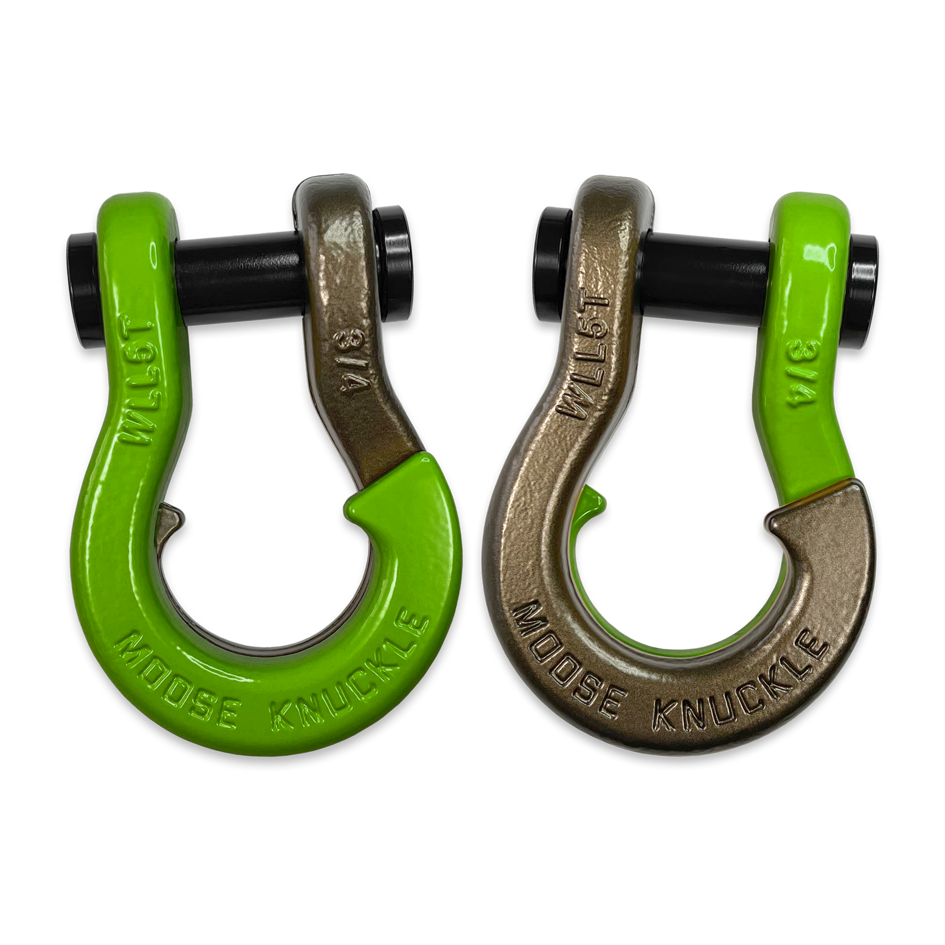 All color options are fully interchangeable. Buy two different color shackles and combine them to match the color scheme of your rig and give your build a more custom accented look. The hooked sides are fully covered with a durable powder coating pantone color matched to popular truck and Jeep colors. The shackle pin is Black Nickel plated and machined from High Strength Grade 8 Carbon Steel.