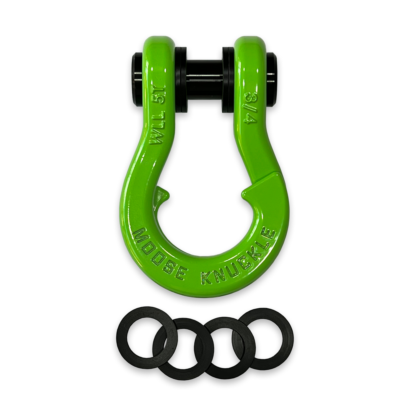 Each shackle includes four durable nylon shackle isolators. Two 3.0mm thick washers and two 2.0mm thick washers help you center your Jowl™ shackle on any width bumper shackle mount, gusset, winch rope, or shackle receiver.