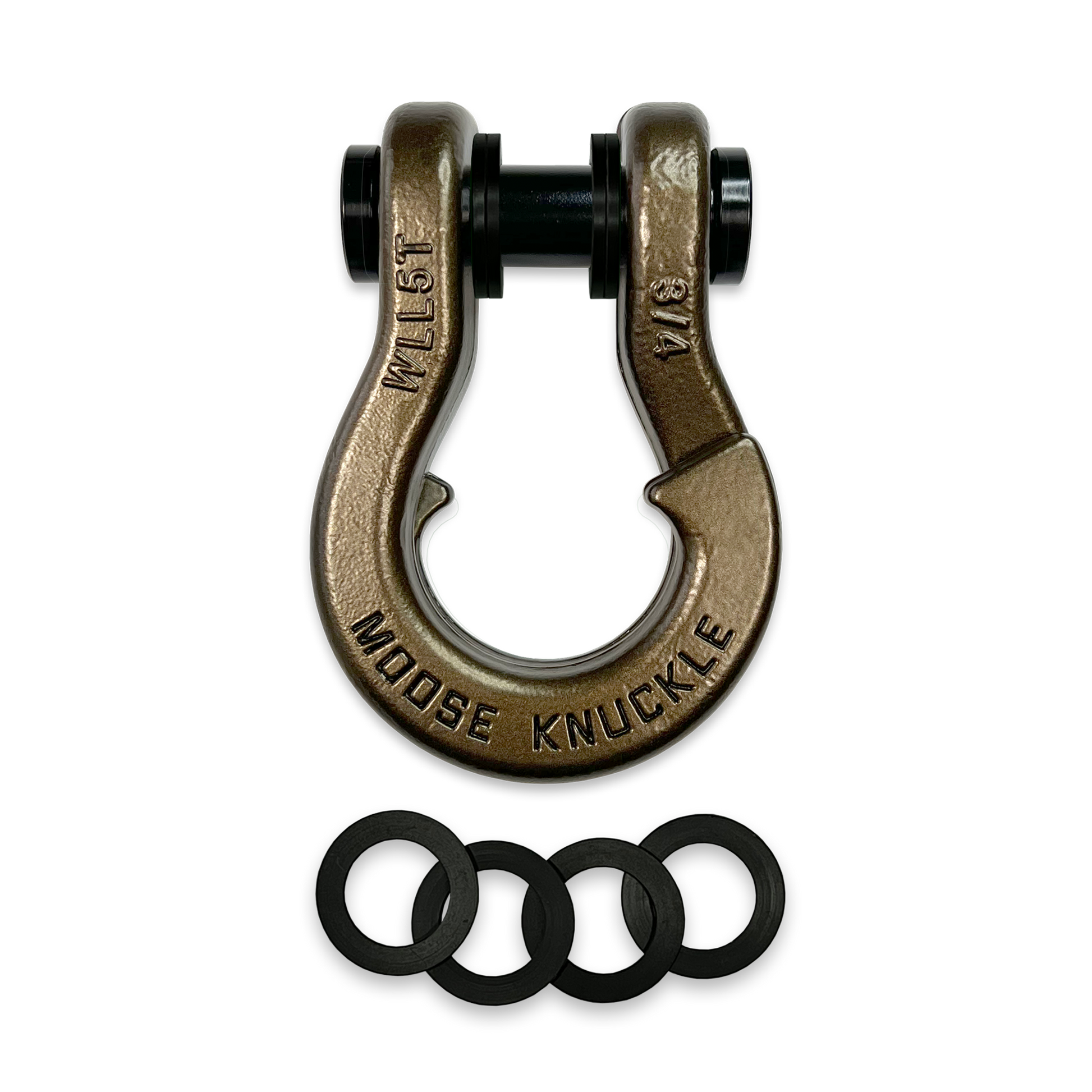 Each shackle includes four durable nylon shackle isolators. Two 3.0mm thick washers and two 2.0mm thick washers help you center your Jowl™ shackle on any width bumper shackle mount, gusset, winch rope, or shackle receiver.