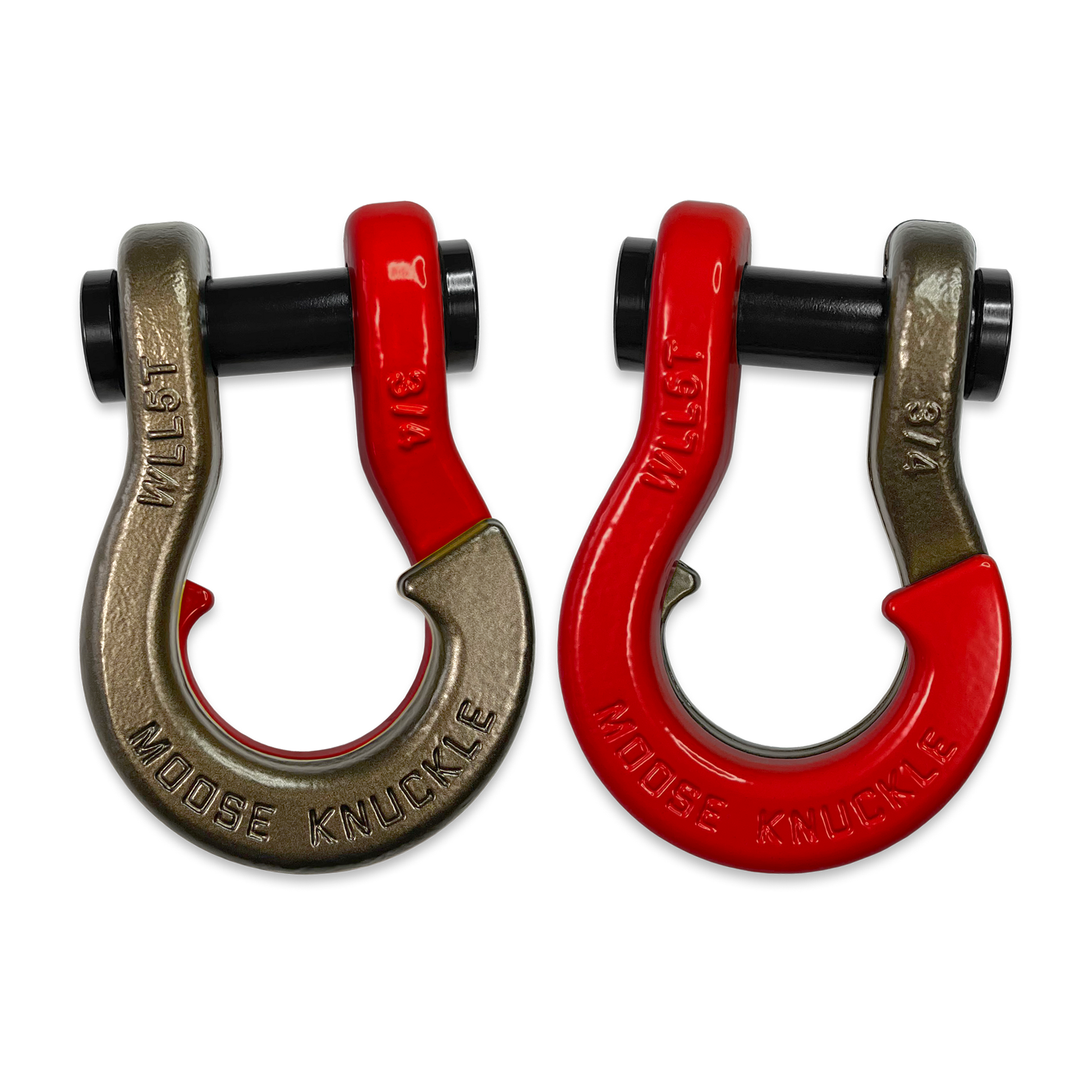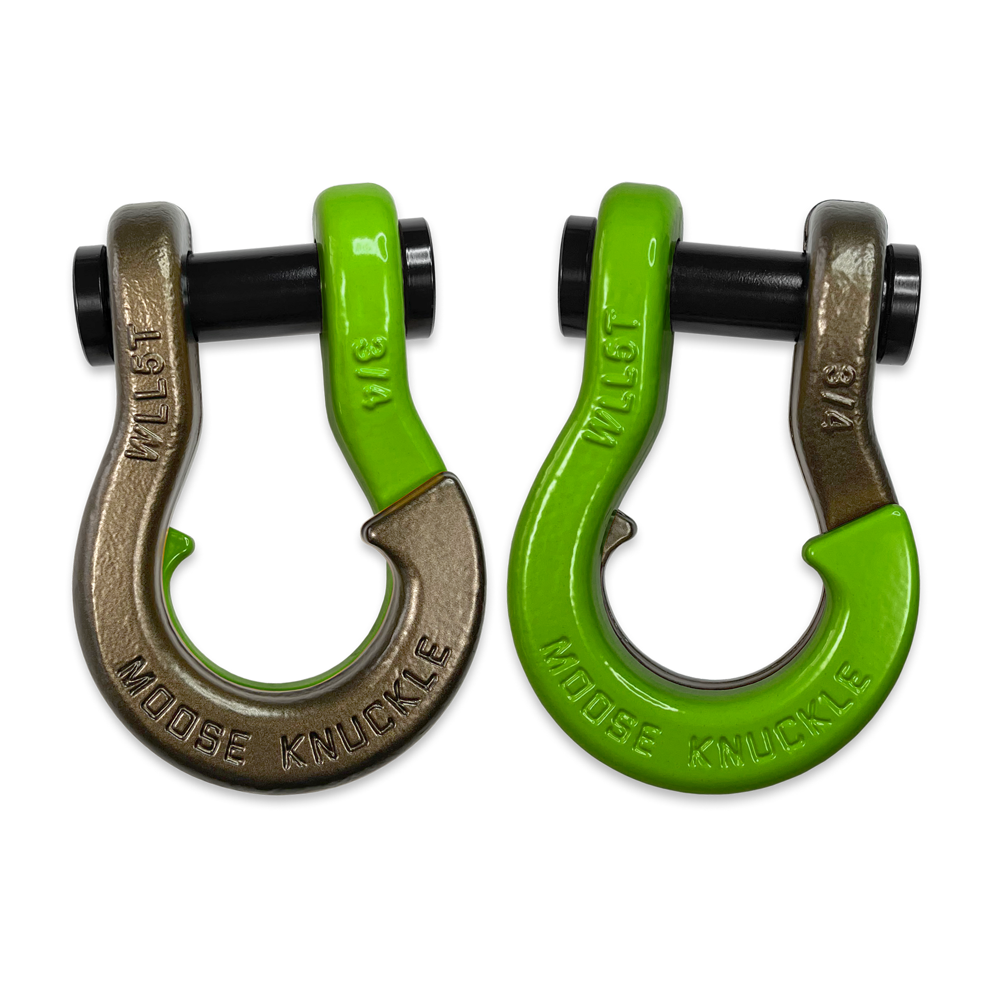 All color options are fully interchangeable. Buy two different color shackles and combine them to match the color scheme of your rig and give your build a more custom accented look. The hooked sides are fully covered with a durable powder coating pantone color matched to popular truck and Jeep colors. The shackle pin is Black Nickel plated and machined from High Strength Grade 8 Carbon Steel.
