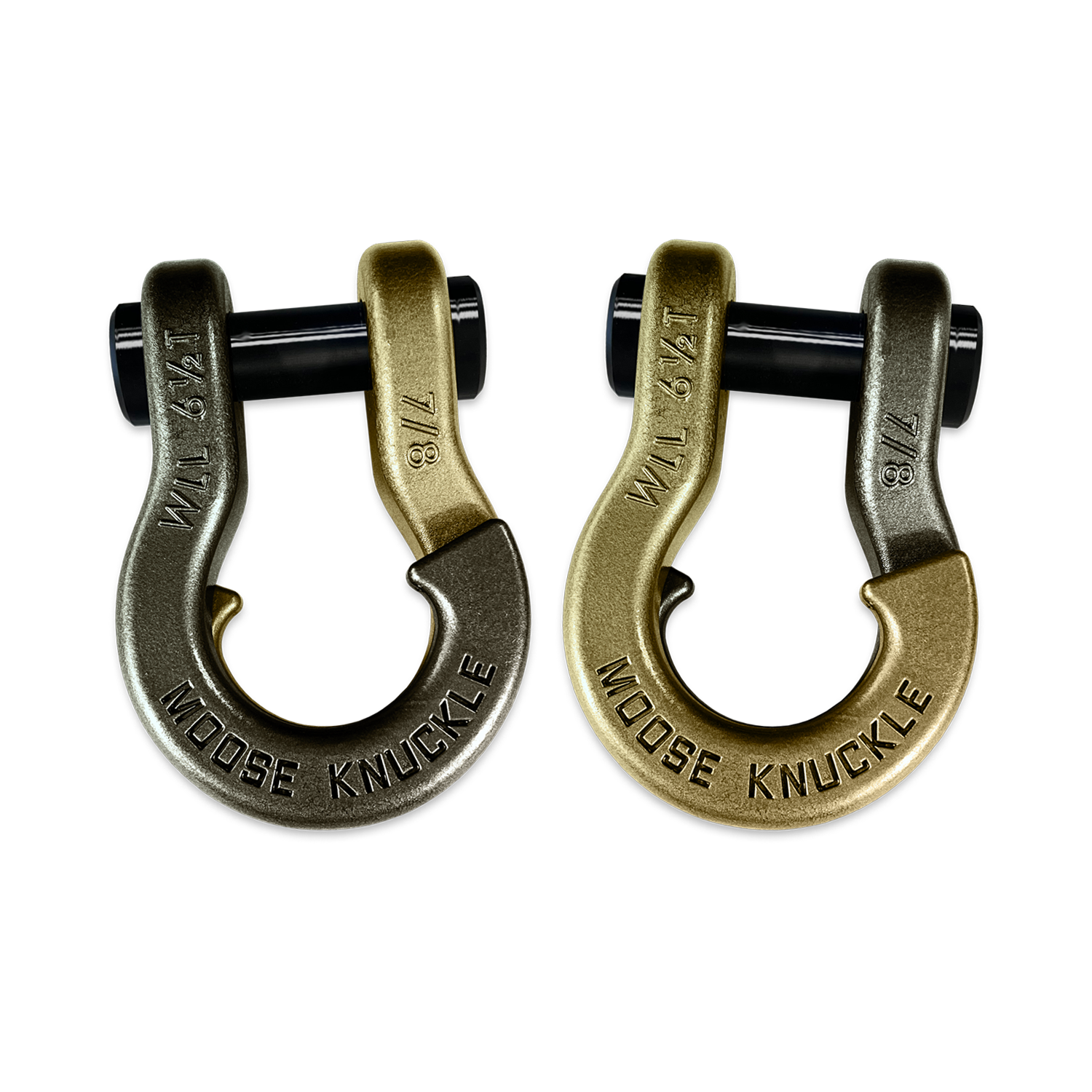 All color options are fully interchangeable. Buy two different color shackles and combine the two symmetrical hook halves to match the color scheme of your rig and give your build a more custom accented look. The hooked sides are fully covered with a durable powder coating pantone color matched to popular truck and Jeep colors. The shackle pin is Black Nickel plated and machined from High Strength Grade 8 Carbon Steel.