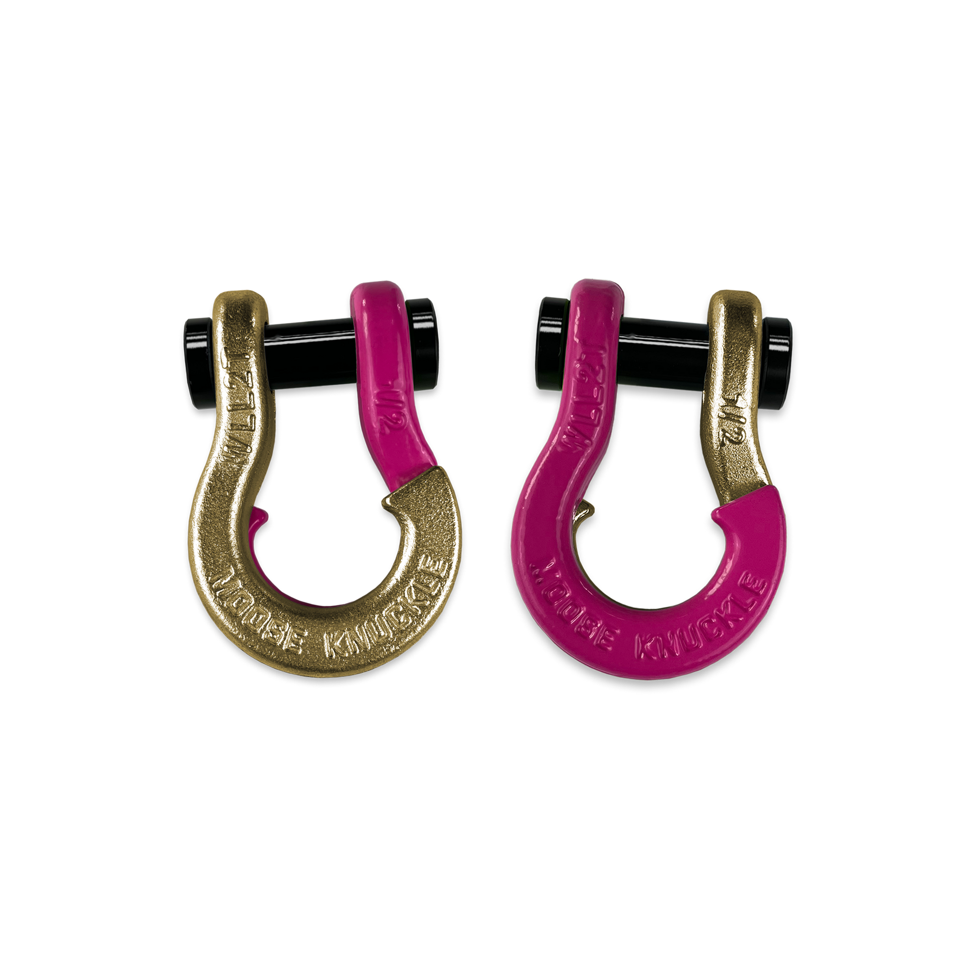 All color options are fully interchangeable. Buy two different color shackles and combine them to match the color scheme of your rig and give your build a more custom accented look. The hooked sides are fully covered with a durable powder coating pantone color matched to popular truck and Jeep® colors. The shackle pin is Black Nickel plated and machined from High Strength Grade 8 Carbon Steel.