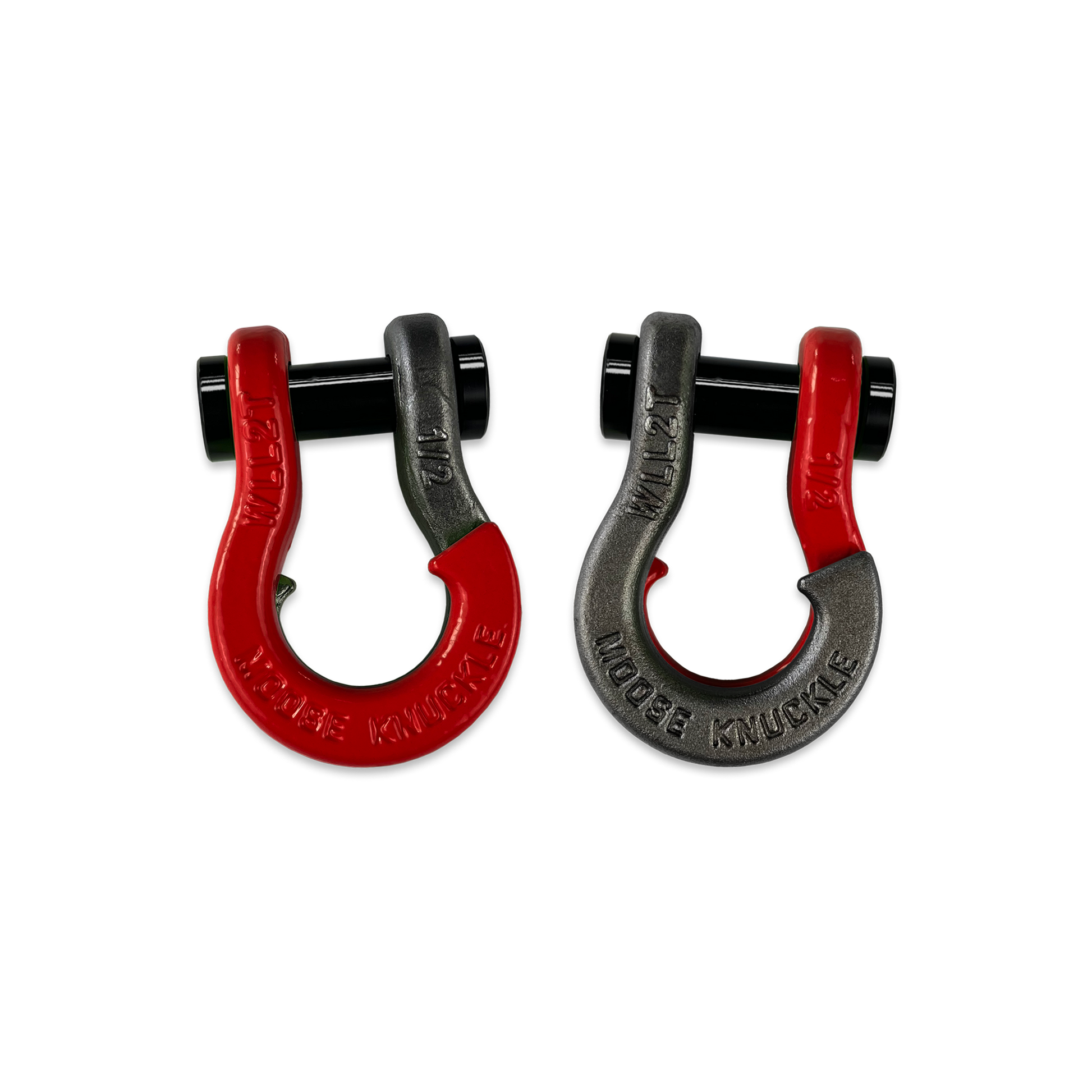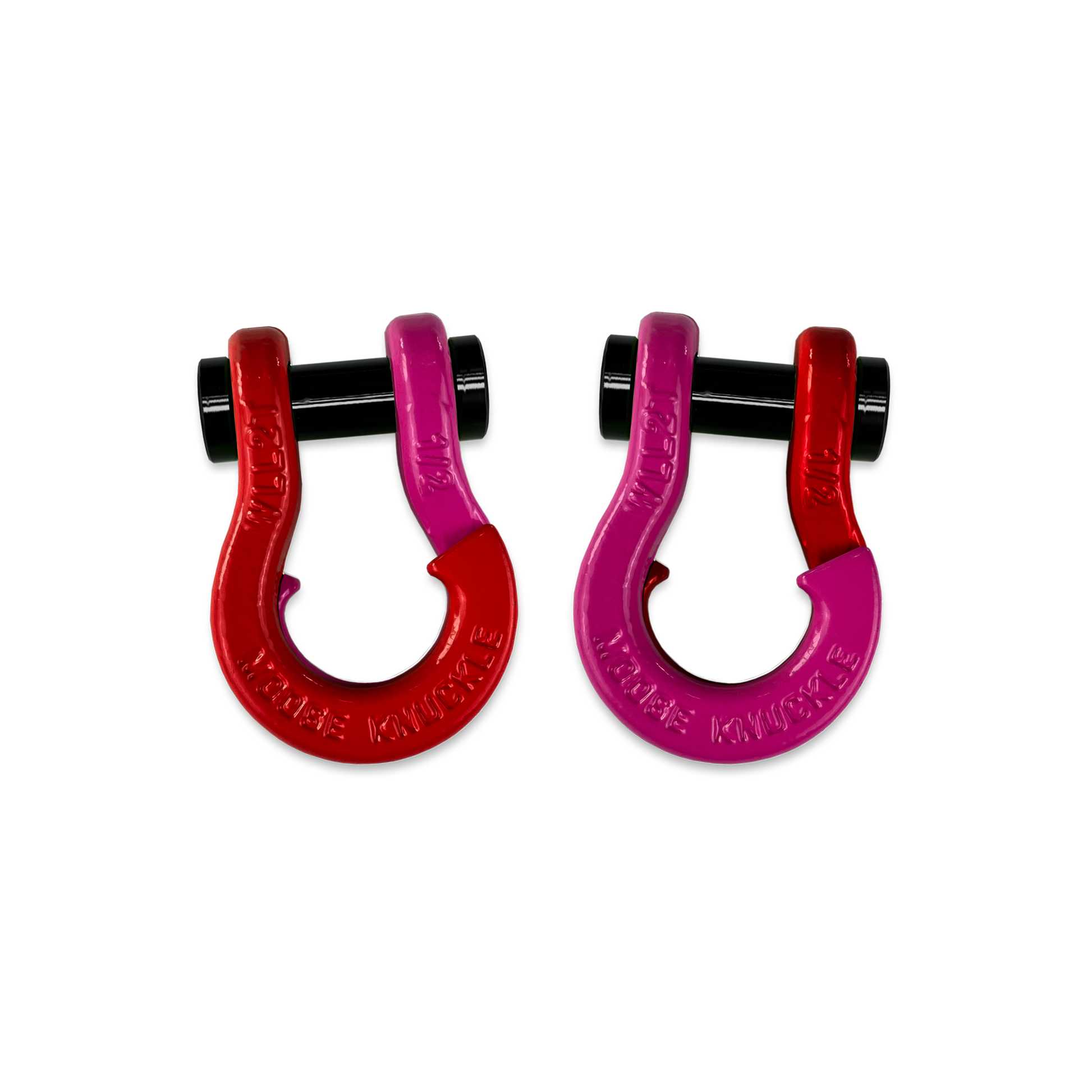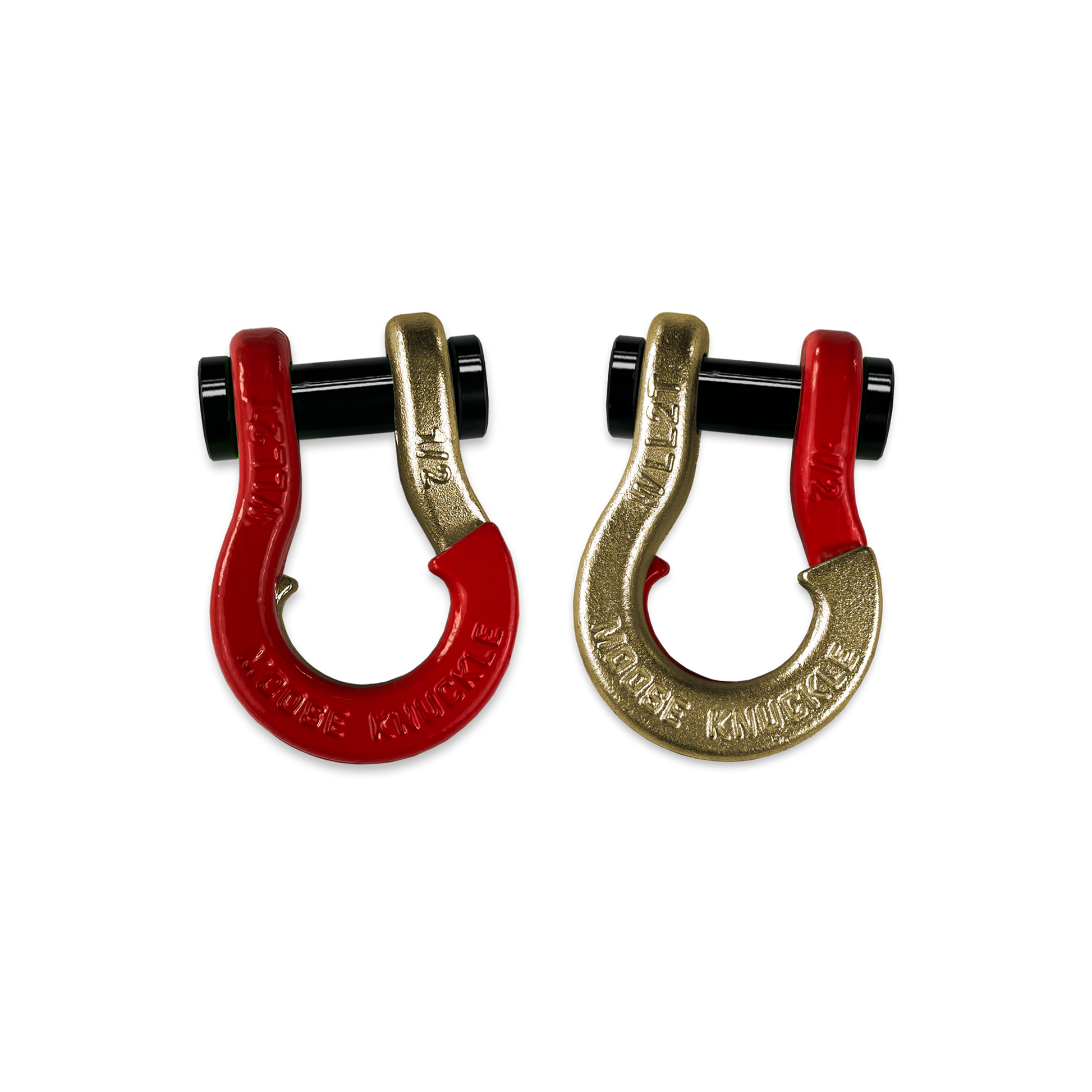 All color options are fully interchangeable. Buy two different color shackles and combine them to match the color scheme of your rig and give your build a more custom accented look. The hooked sides are fully covered with a durable powder coating pantone color matched to popular truck and Jeep® colors. The shackle pin is Black Nickel plated and machined from High Strength Grade 8 Carbon Steel.